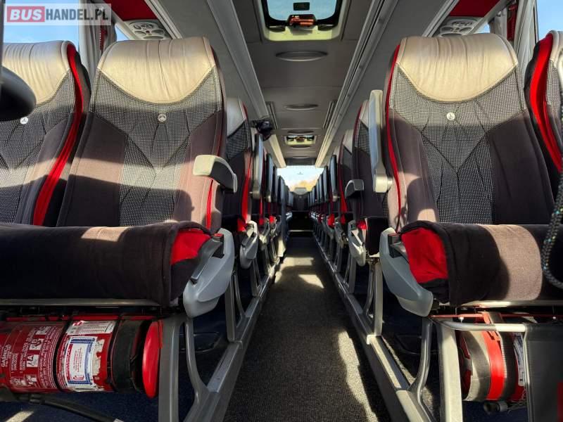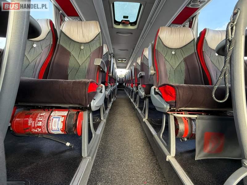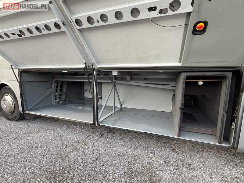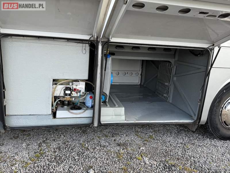 Wyposażenie: klimatyzacja, video, WC, lodówka, caffebar, kabina sypialna, oświetlenie indywidualne, nawiewy dyszowe, podnóżki, stoliczki, siateczki, ABS, ASR, tempomat, retarder, CD, mikrofon, radio, fotele odchylane i rozsuwane, regulacja wysokości nadwozia, centralny zamek, podwójne szyby boczne, wspomaganie kierownicy, elektryczne lusterka, ogrzewanie stacjonarne, DVD, ESP