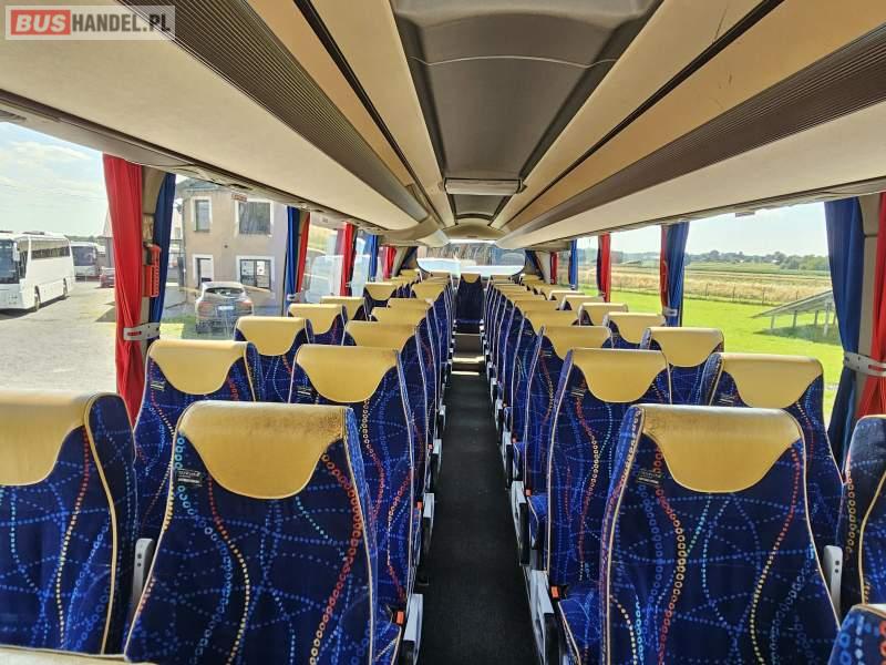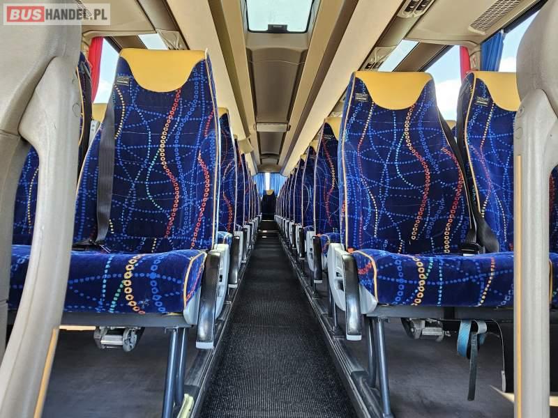Wyposażenie: video, lodówka, caffebar, fotele odchylane, oświetlenie indywidualne, nawiewy dyszowe, siateczki, ABS, ASR, tempomat, retarder, CD, podnóżki, mikrofon, klimatyzacja, radio, regulacja wysokości nadwozia, centralny zamek, podwójne szyby boczne, wspomaganie kierownicy, elektryczne lusterka, DVD, ogrzewanie stacjonarne, ESP