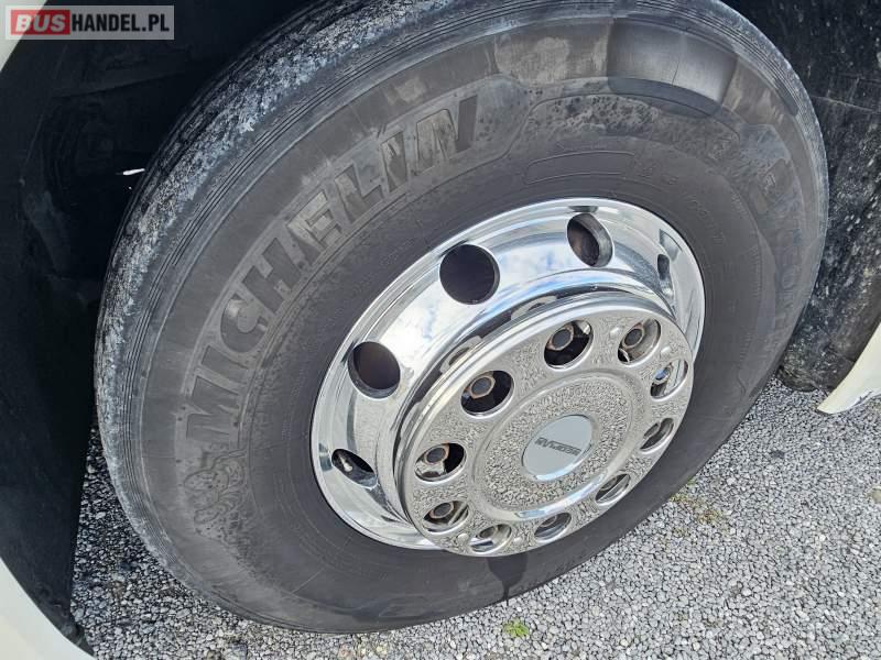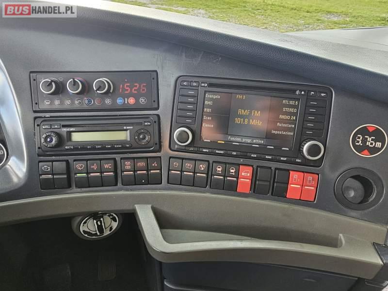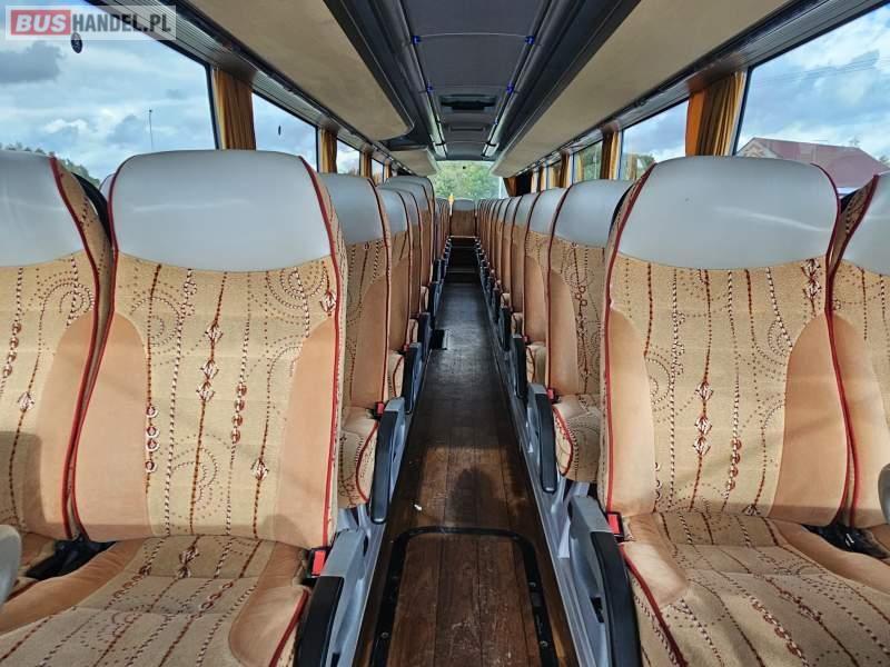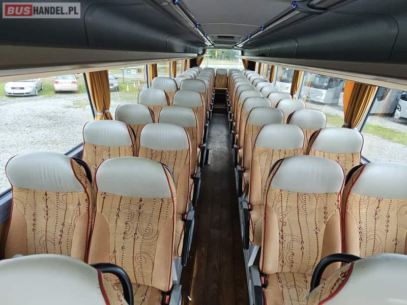 Wyposażenie: video, WC, lodówka, caffebar, kabina sypialna, oświetlenie indywidualne, nawiewy dyszowe, siateczki, ABS, ASR, tempomat, retarder, nawigacja, CD, podnóżki, stoliczki, mikrofon, klimatyzacja, radio, regulacja wysokości nadwozia, centralny zamek, podwójne szyby boczne, wspomaganie kierownicy, elektryczne lusterka, aluminiowe felgi, fotele odchylane i rozsuwane, DVD, ogrzewanie stacjonarne, ESP