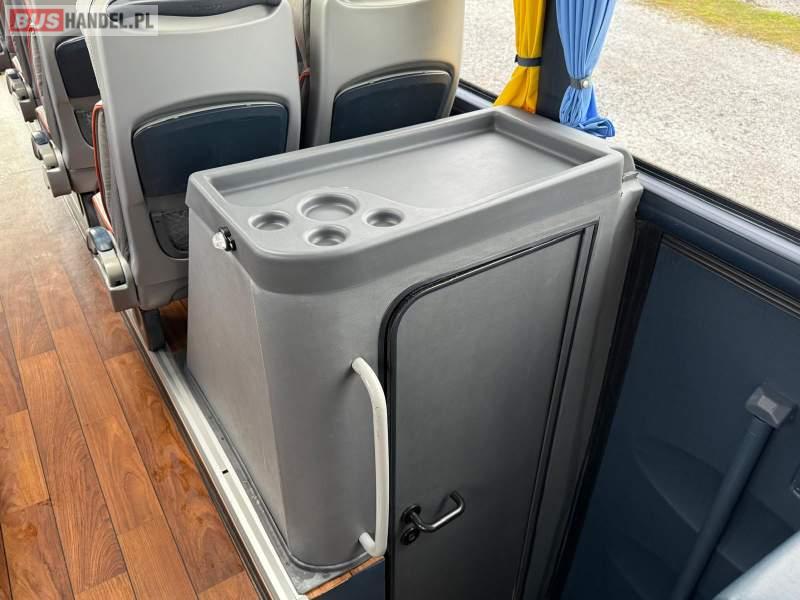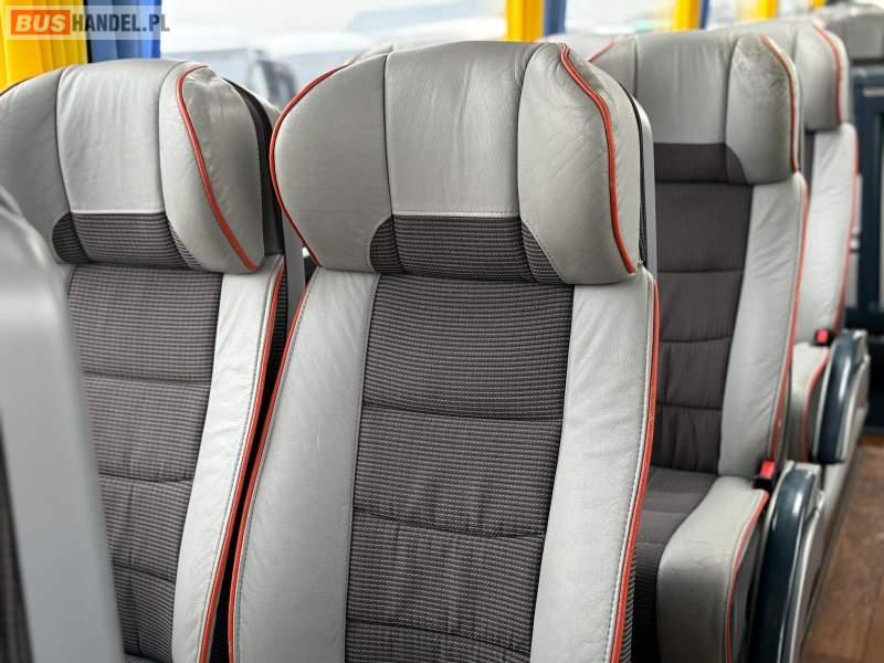 Wyposażenie: video, WC, lodówka, caffebar, kabina sypialna, oświetlenie indywidualne, nawiewy dyszowe, siateczki, ABS, ASR, tempomat, retarder, CD, podnóżki, stoliczki, mikrofon, klimatyzacja, radio, regulacja wysokości nadwozia, centralny zamek, podwójne szyby boczne, wspomaganie kierownicy, elektryczne lusterka, fotele odchylane i rozsuwane, DVD, ogrzewanie stacjonarne, ESP