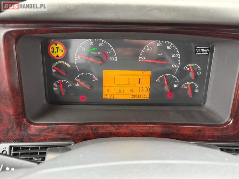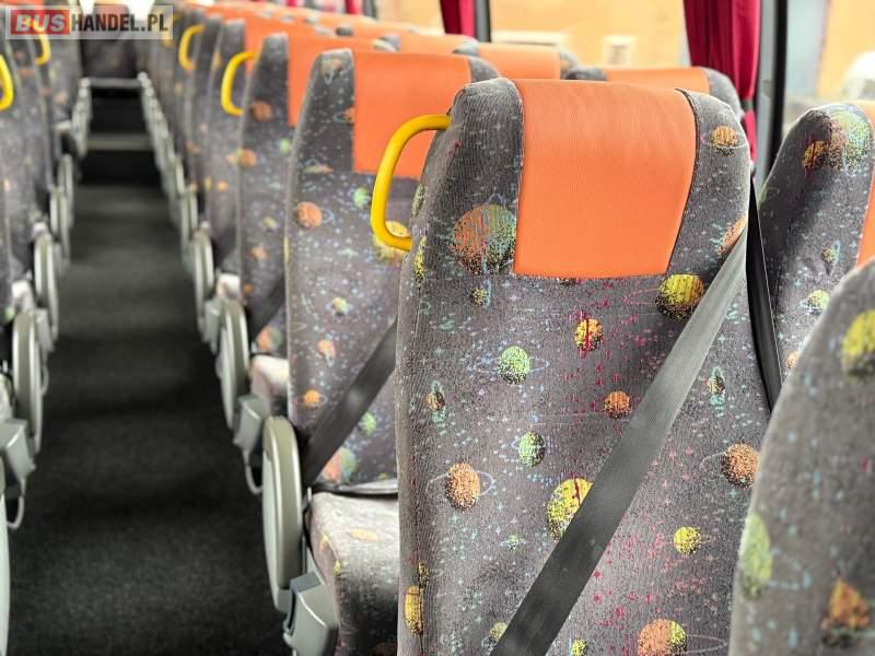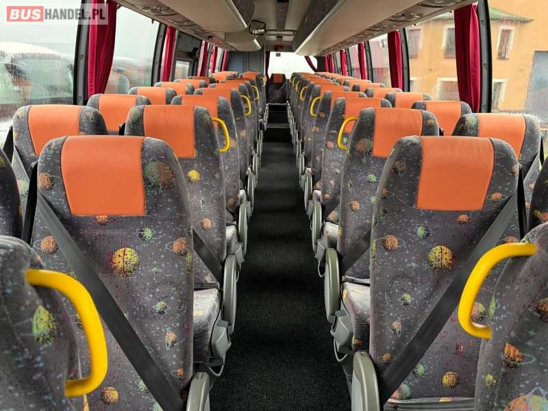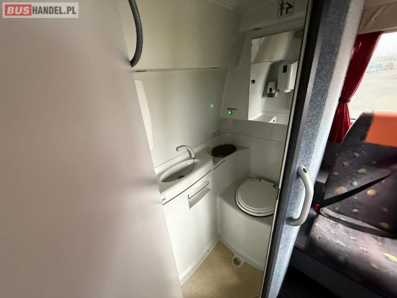 Wyposażenie: WC, oświetlenie indywidualne, nawiewy dyszowe, ABS, ASR, tempomat, retarder, CD, podnóżki, mikrofon, klimatyzacja, radio, wyświetlacz matrix, rampa dla inwalidów, regulacja wysokości nadwozia, centralny zamek, podwójne szyby boczne, wspomaganie kierownicy, elektryczne lusterka, fotele odchylane i rozsuwane, ogrzewanie stacjonarne