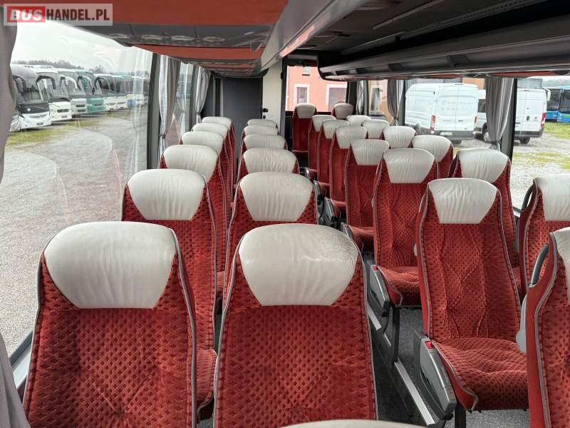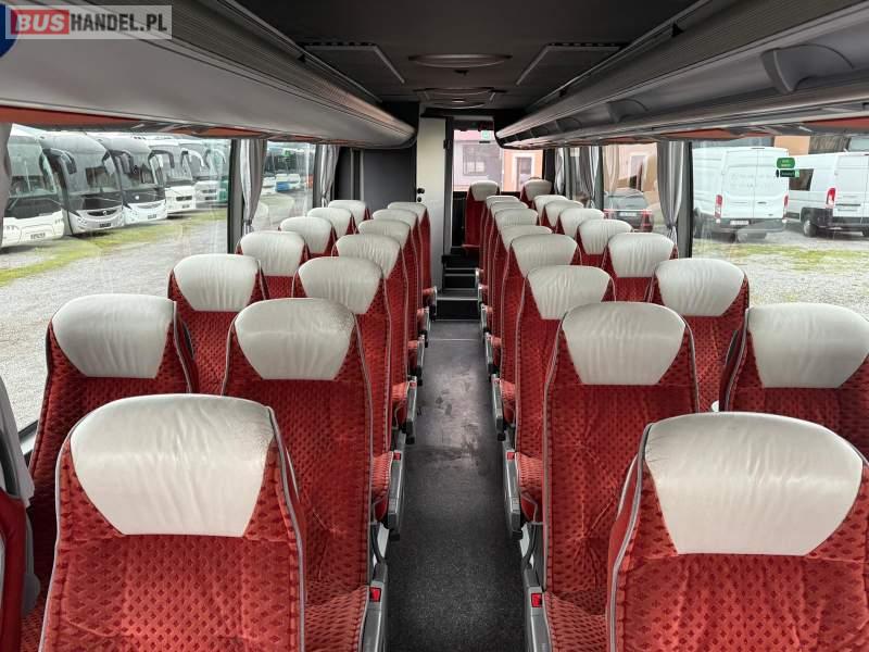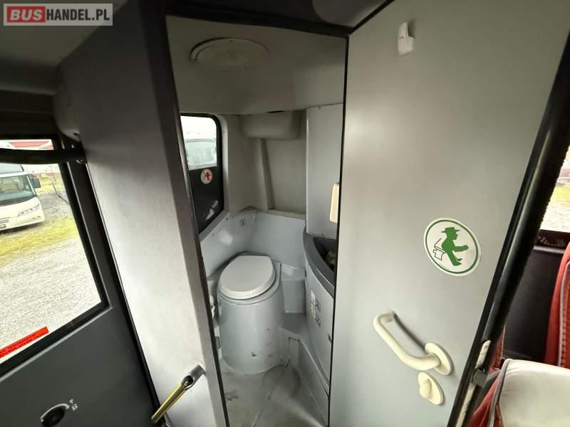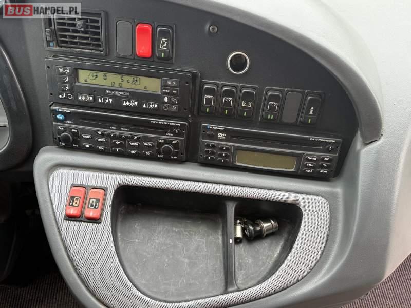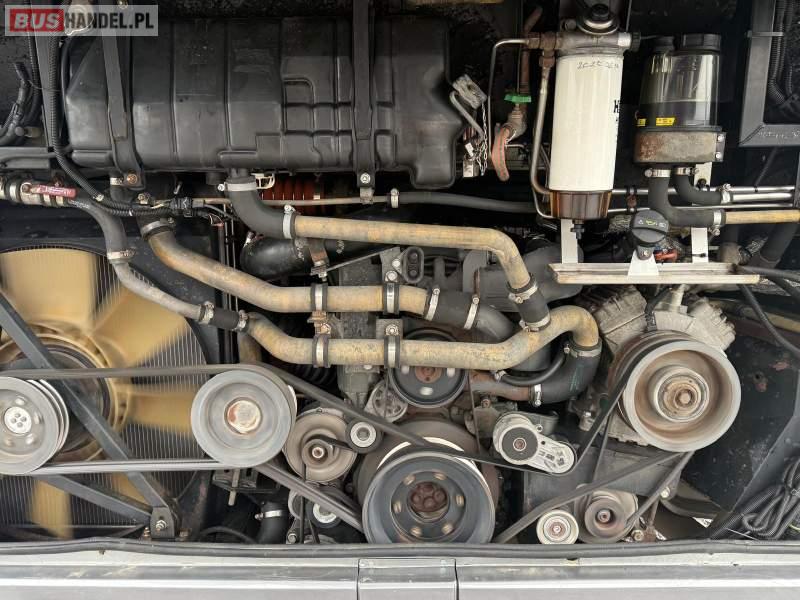 Wyposażenie: video, WC, lodówka, caffebar, oświetlenie indywidualne, nawiewy dyszowe, siateczki, ABS, ASR, tempomat, retarder, CD, podnóżki, stoliczki, mikrofon, klimatyzacja, radio, regulacja wysokości nadwozia, centralny zamek, podwójne szyby boczne, wspomaganie kierownicy, elektryczne lusterka, fotele odchylane i rozsuwane, DVD, ogrzewanie stacjonarne, ESP