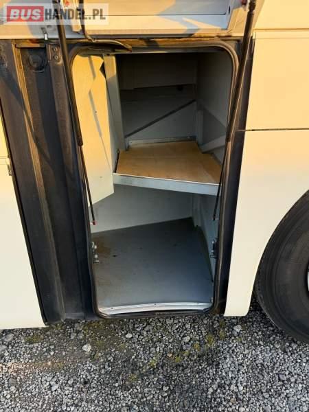 Wyposażenie: video, WC, lodówka, caffebar, kabina sypialna, oświetlenie indywidualne, nawiewy dyszowe, siateczki, ABS, ASR, tempomat, retarder, CD, podnóżki, stoliczki, mikrofon, klimatyzacja, radio, regulacja wysokości nadwozia, centralny zamek, podwójne szyby boczne, wspomaganie kierownicy, elektryczne lusterka, fotele odchylane i rozsuwane, DVD, ogrzewanie stacjonarne, ESP