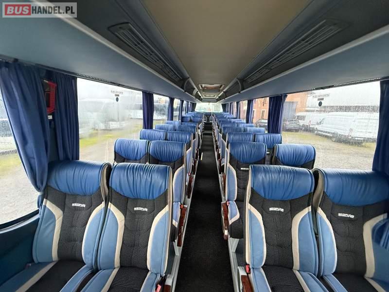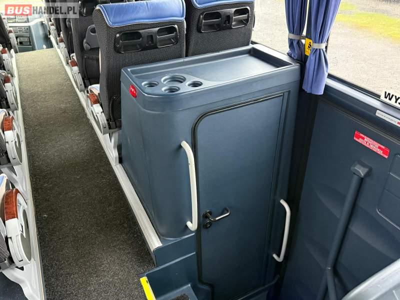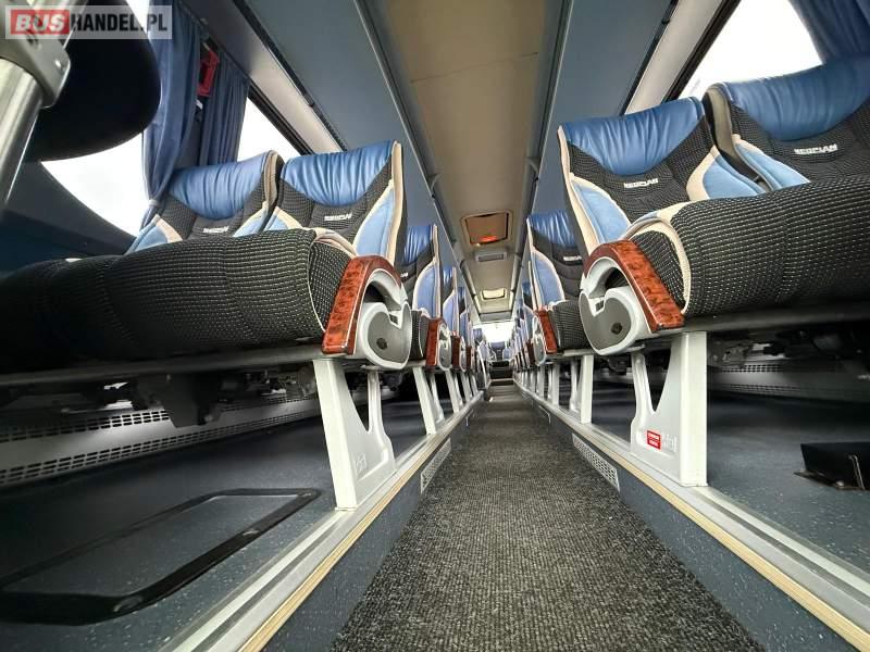 Wyposażenie: klimatyzacja, video, WC, lodówka, kabina sypialna, oświetlenie indywidualne, nawiewy dyszowe, podnóżki, stoliczki, siateczki, ABS, ASR, tempomat, retarder, CD, mikrofon, radio, fotele odchylane i rozsuwane, regulacja wysokości nadwozia, centralny zamek, podwójne szyby boczne, wspomaganie kierownicy, elektryczne lusterka, ogrzewanie stacjonarne, DVD, ESP