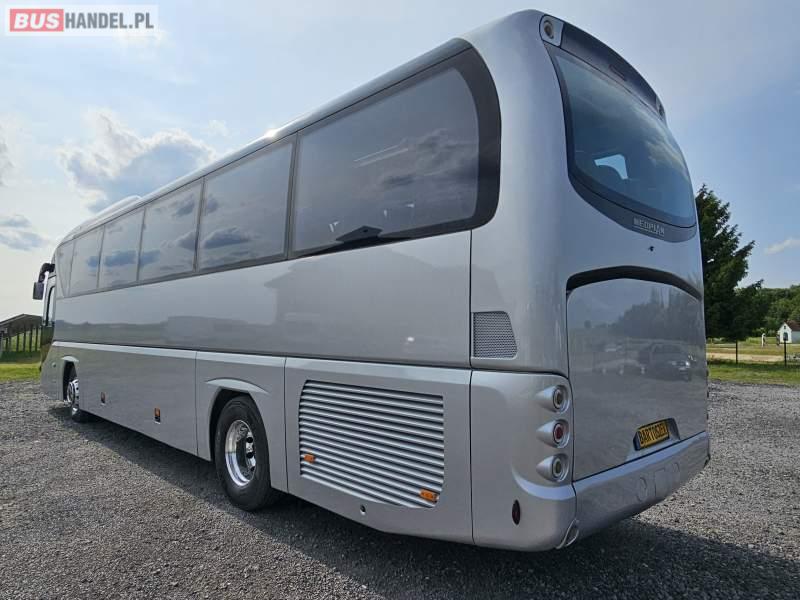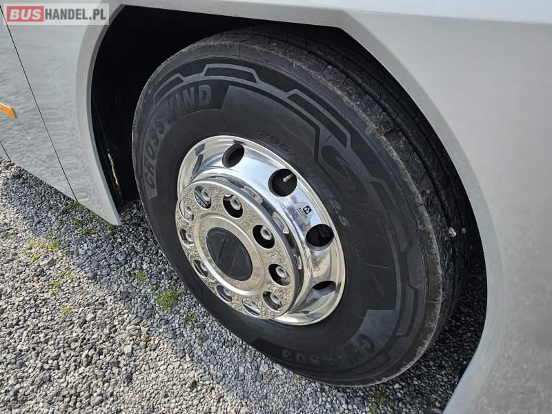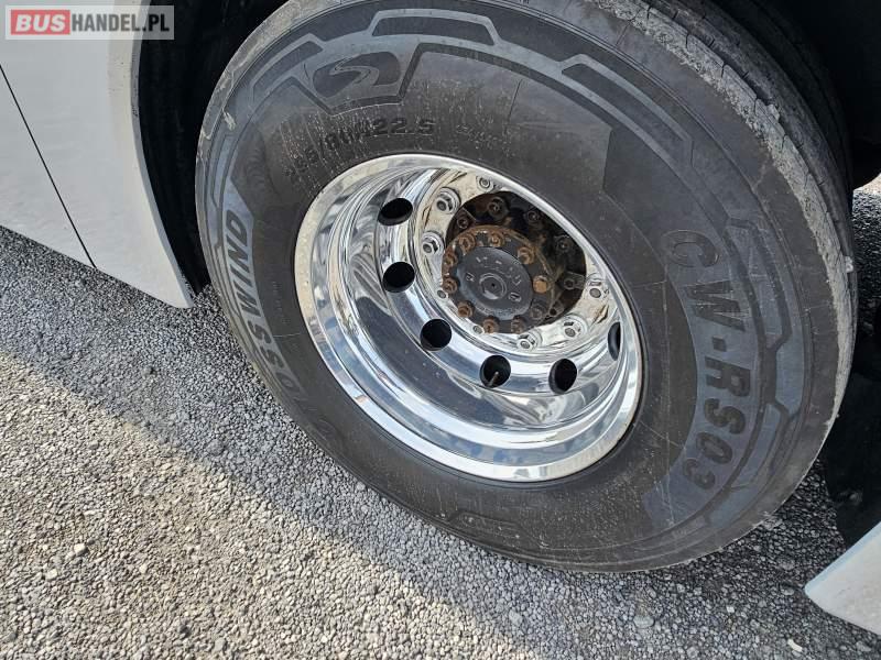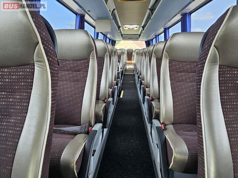Wyposażenie: video, WC, lodówka, kabina sypialna, oświetlenie indywidualne, nawiewy dyszowe, siateczki, ABS, ASR, tempomat, retarder, CD, podnóżki, stoliczki, mikrofon, klimatyzacja, radio, regulacja wysokości nadwozia, centralny zamek, podwójne szyby boczne, wspomaganie kierownicy, elektryczne lusterka, aluminiowe felgi, fotele odchylane i rozsuwane, DVD, ogrzewanie stacjonarne, ESP