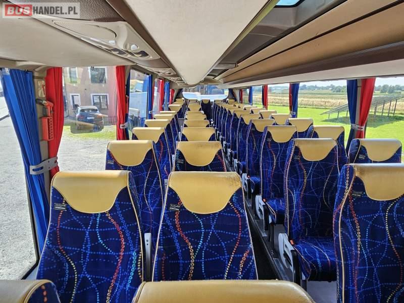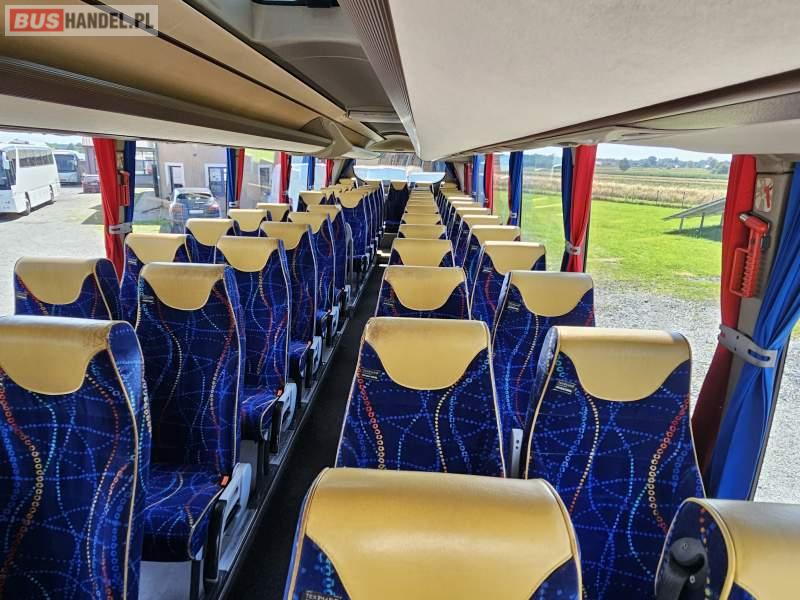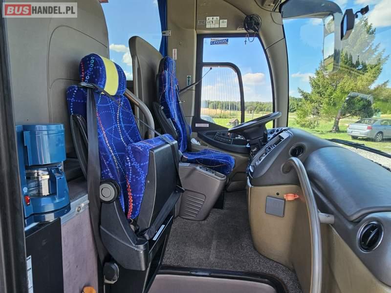 Wyposażenie: video, lodówka, caffebar, fotele odchylane, oświetlenie indywidualne, nawiewy dyszowe, siateczki, ABS, ASR, tempomat, retarder, CD, podnóżki, mikrofon, klimatyzacja, radio, regulacja wysokości nadwozia, centralny zamek, podwójne szyby boczne, wspomaganie kierownicy, elektryczne lusterka, DVD, ogrzewanie stacjonarne, ESP