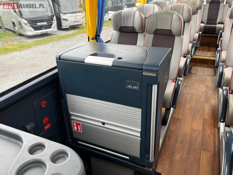 Wyposażenie: video, WC, lodówka, caffebar, kabina sypialna, oświetlenie indywidualne, nawiewy dyszowe, siateczki, ABS, ASR, tempomat, retarder, CD, podnóżki, stoliczki, mikrofon, klimatyzacja, radio, regulacja wysokości nadwozia, centralny zamek, podwójne szyby boczne, wspomaganie kierownicy, elektryczne lusterka, fotele odchylane i rozsuwane, DVD, ogrzewanie stacjonarne, ESP