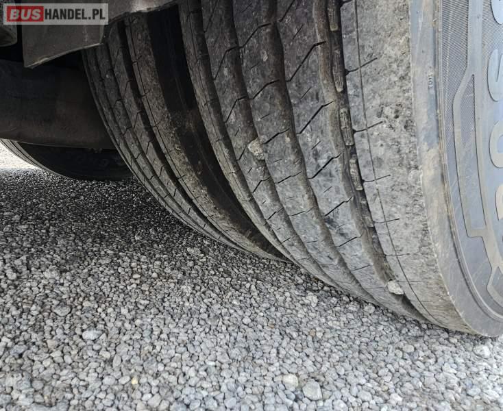 Wyposażenie: video, WC, lodówka, kabina sypialna, oświetlenie indywidualne, nawiewy dyszowe, siateczki, ABS, ASR, tempomat, retarder, CD, podnóżki, stoliczki, mikrofon, klimatyzacja, radio, regulacja wysokości nadwozia, centralny zamek, podwójne szyby boczne, wspomaganie kierownicy, elektryczne lusterka, aluminiowe felgi, fotele odchylane i rozsuwane, DVD, ogrzewanie stacjonarne, ESP