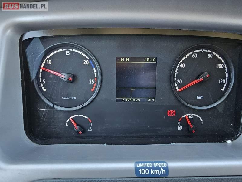 Wyposażenie: oświetlenie indywidualne, nawiewy dyszowe, ABS, ASR, tempomat, retarder, CD, fotele nieodchylane, mikrofon, klimatyzacja, radio, wyświetlacz matrix, rampa dla inwalidów, regulacja wysokości nadwozia, centralny zamek, podwójne szyby boczne, wspomaganie kierownicy, elektryczne lusterka, DVD, ogrzewanie stacjonarne, ESP