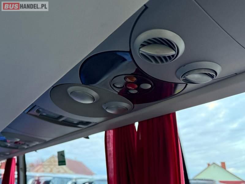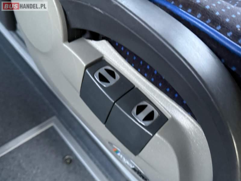 Wyposażenie: video, WC, caffebar, oświetlenie indywidualne, nawiewy dyszowe, siateczki, ABS, ASR, tempomat, retarder, CD, podnóżki, stoliczki, mikrofon, klimatyzacja, radio, rampa dla inwalidów, regulacja wysokości nadwozia, centralny zamek, podwójne szyby boczne, wspomaganie kierownicy, elektryczne lusterka, fotele odchylane i rozsuwane, ogrzewanie stacjonarne