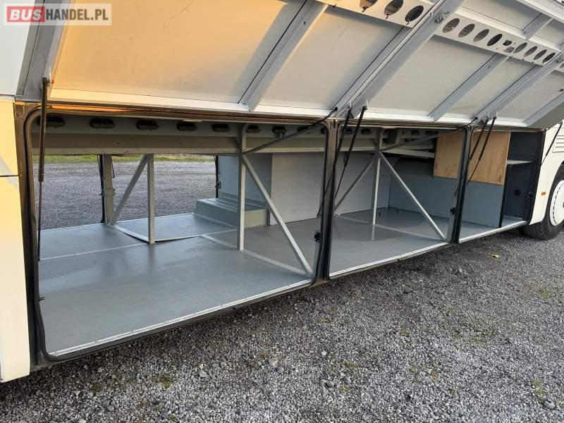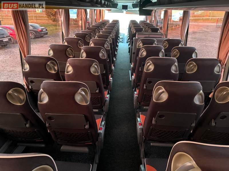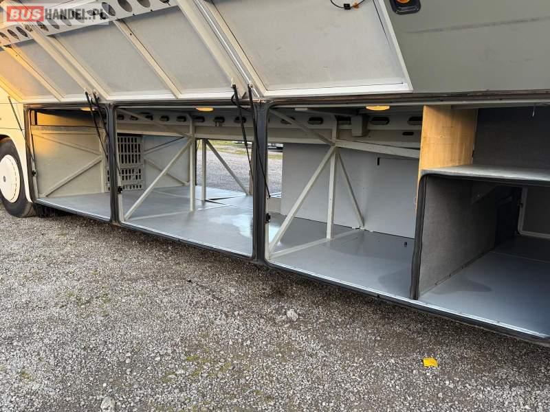 Wyposażenie: klimatyzacja, video, WC, lodówka, caffebar, kabina sypialna, oświetlenie indywidualne, nawiewy dyszowe, podnóżki, stoliczki, siateczki, ABS, ASR, tempomat, retarder, CD, mikrofon, radio, fotele odchylane i rozsuwane, regulacja wysokości nadwozia, centralny zamek, podwójne szyby boczne, wspomaganie kierownicy, elektryczne lusterka, ogrzewanie stacjonarne, DVD, ESP