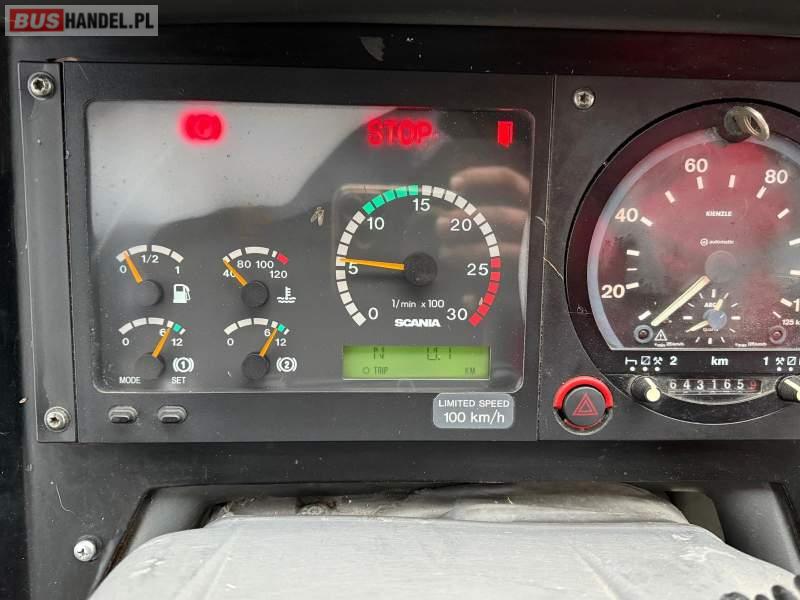 Wyposażenie: caffebar, nawiewy dyszowe, ABS, ASR, tempomat, retarder, CD, podnóżki, fotele nieodchylane, mikrofon, klimatyzacja, radio, wyświetlacz matrix, regulacja wysokości nadwozia, centralny zamek, podwójne szyby boczne, wspomaganie kierownicy, elektryczne lusterka, ogrzewanie stacjonarne