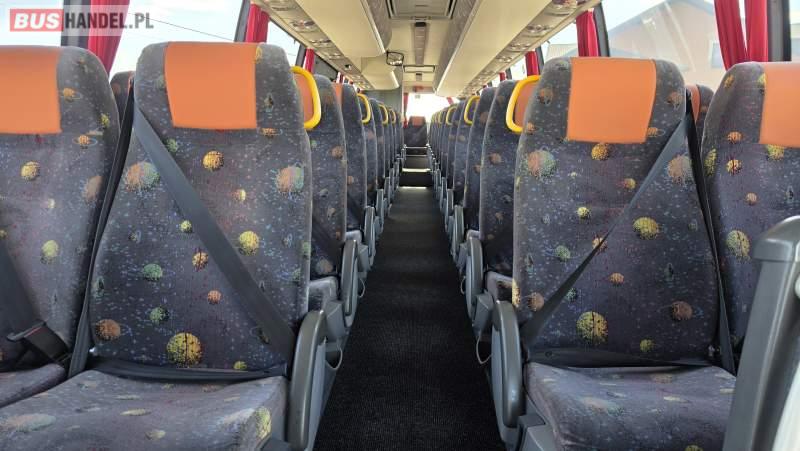 Wyposażenie: video, lodówka, caffebar, oświetlenie indywidualne, nawiewy dyszowe, siateczki, ABS, ASR, tempomat, retarder, CD, podnóżki, mikrofon, klimatyzacja, radio, wyświetlacz matrix, rampa dla inwalidów, regulacja wysokości nadwozia, centralny zamek, podwójne szyby boczne, wspomaganie kierownicy, elektryczne lusterka, fotele odchylane i rozsuwane, DVD, ogrzewanie stacjonarne, ESP