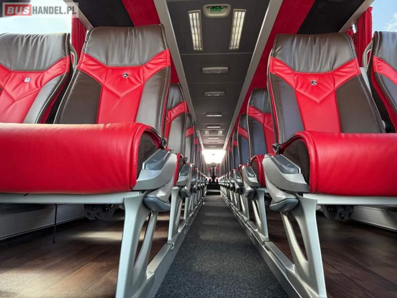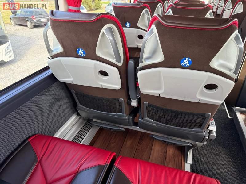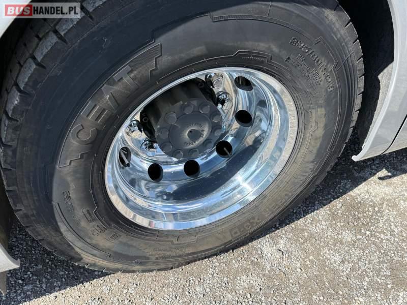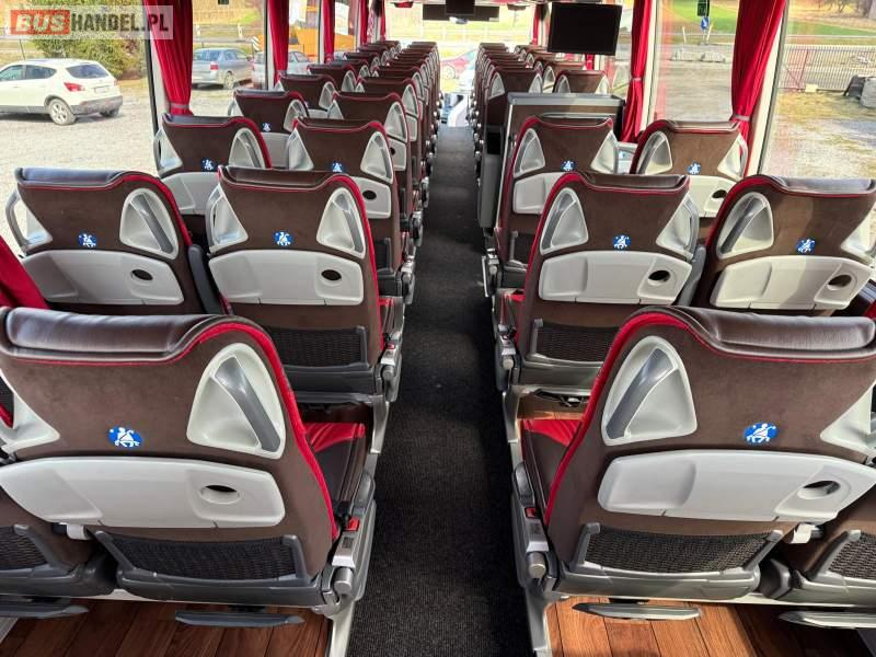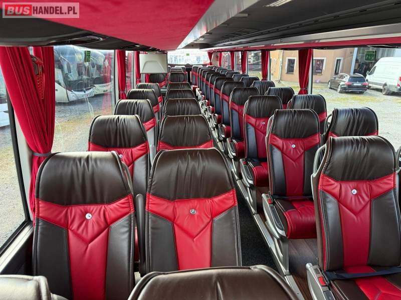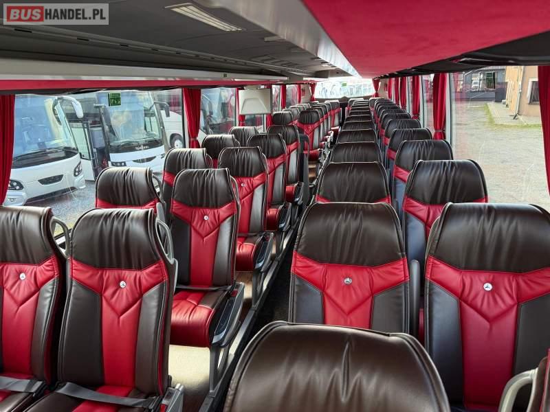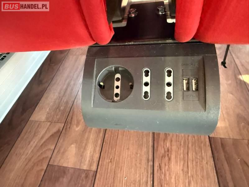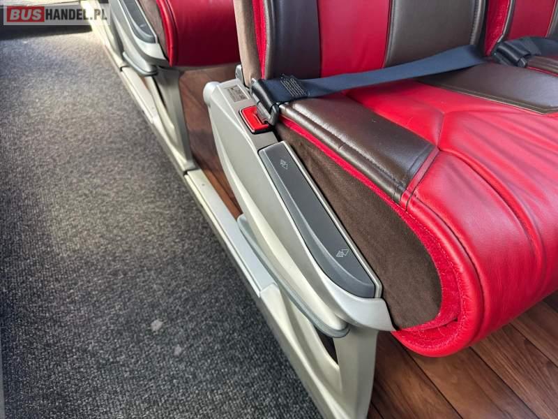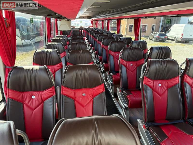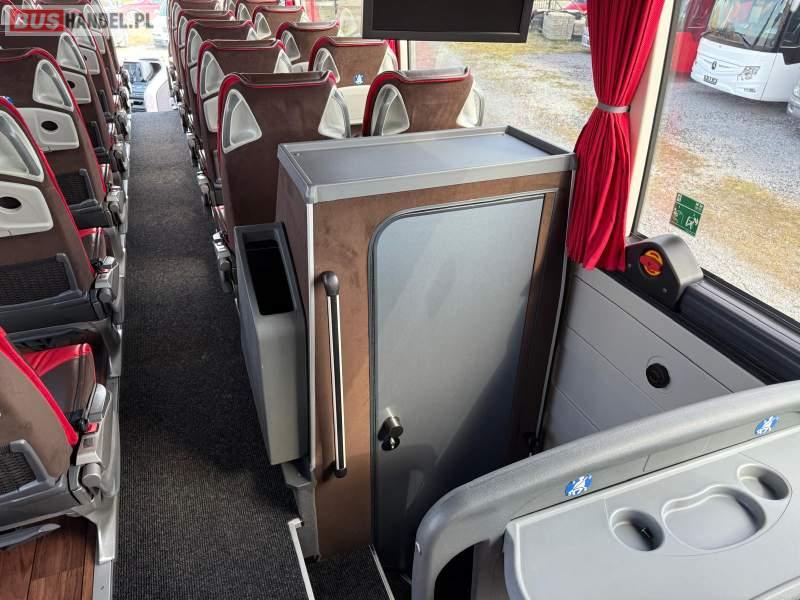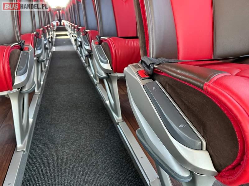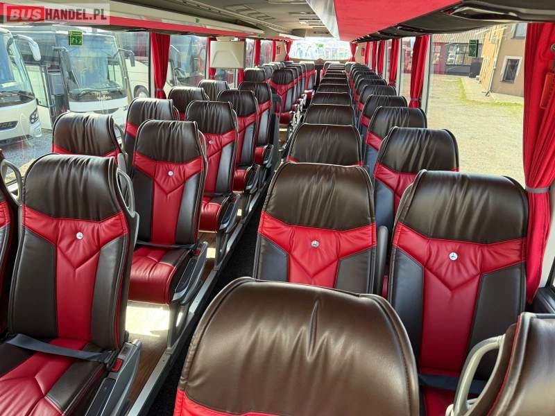 Wyposażenie: video, WC, lodówka, oświetlenie indywidualne, nawiewy dyszowe, siateczki, ABS, ASR, tempomat, retarder, nawigacja, CD, podnóżki, stoliczki, mikrofon, klimatyzacja, radio, wyświetlacz matrix, sejf, regulacja wysokości nadwozia, centralny zamek, podwójne szyby boczne, wspomaganie kierownicy, elektryczne lusterka, aluminiowe felgi, fotele odchylane i rozsuwane, DVD, ogrzewanie stacjonarne, hak holowniczy, ESP
