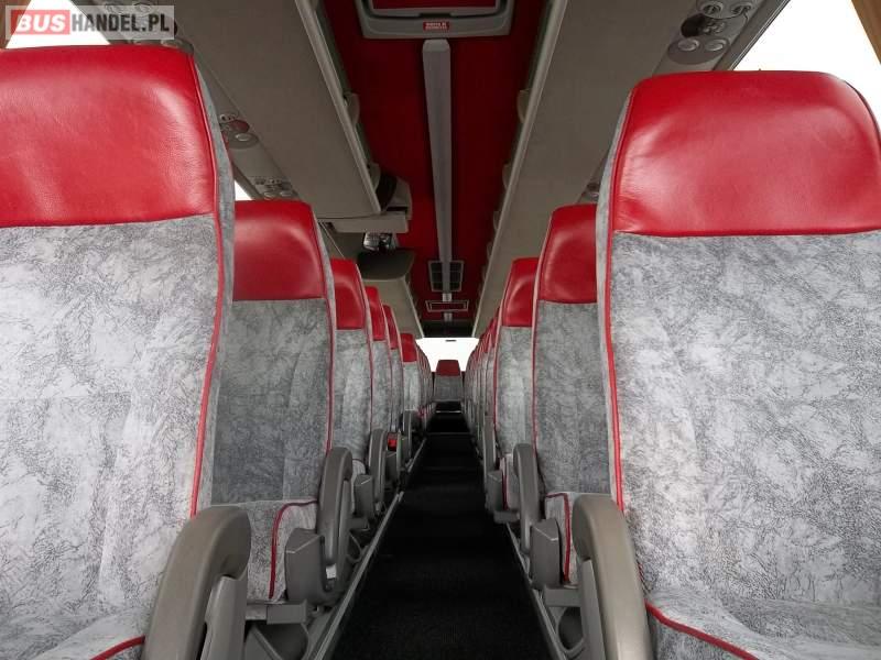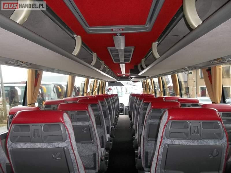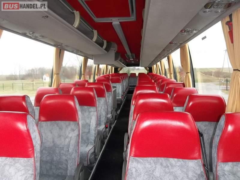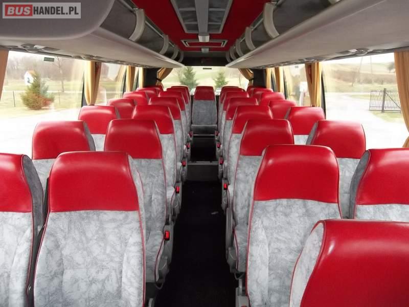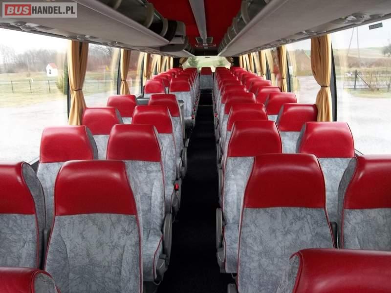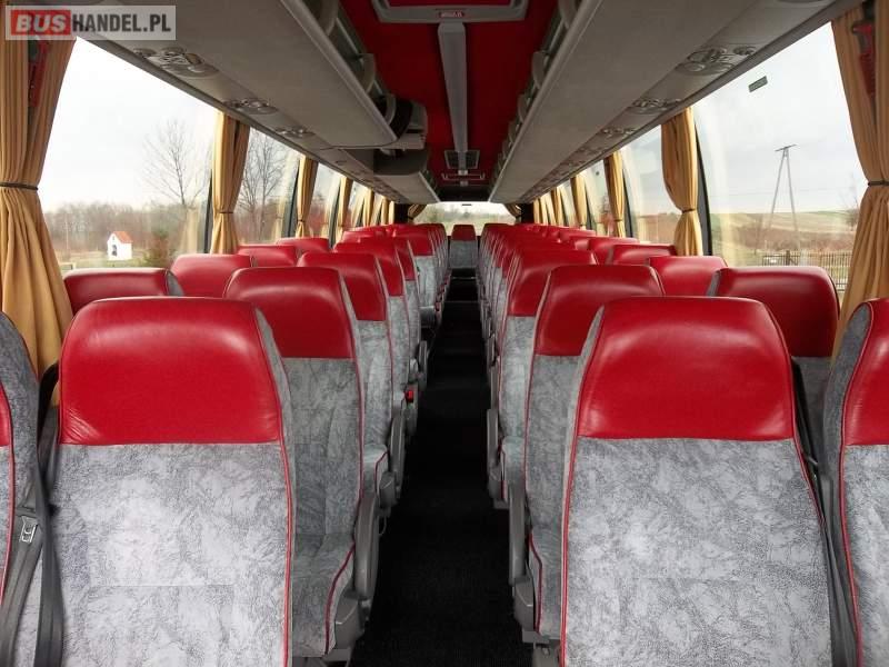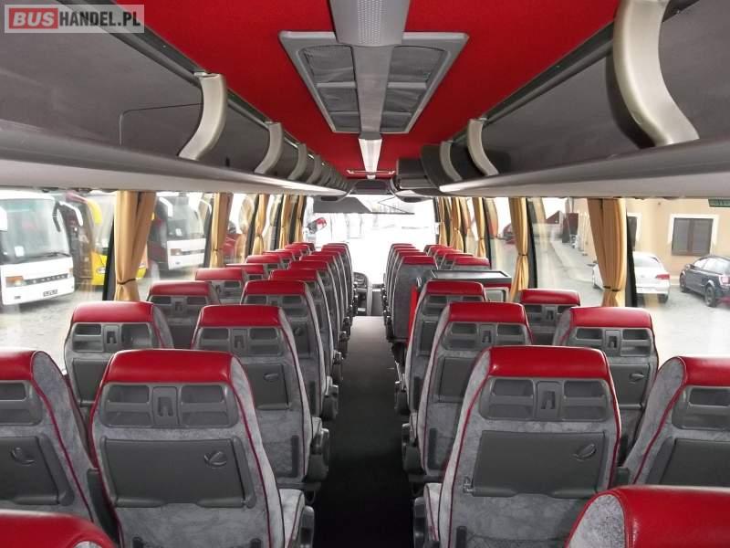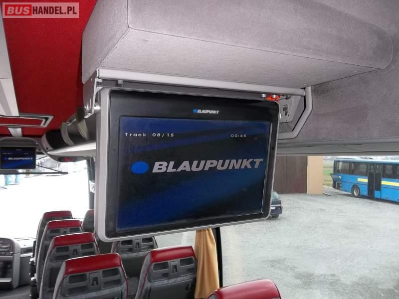 Wyposażenie: video, WC, caffebar, kabina sypialna, fotele odchylane, oświetlenie indywidualne, nawiewy dyszowe, siateczki, ABS, ASR, tempomat, retarder, nawigacja, CD, podnóżki, mikrofon, klimatyzacja, radio, sejf, regulacja wysokości nadwozia, centralny zamek, podwójne szyby boczne, wspomaganie kierownicy, elektryczne lusterka, aluminiowe felgi, DVD, ogrzewanie stacjonarne, ESP