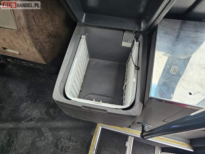 Wyposażenie: video, lodówka, oświetlenie indywidualne, nawiewy dyszowe, siateczki, ABS, ASR, tempomat, retarder, CD, podnóżki, mikrofon, klimatyzacja, radio, centralny zamek, podwójne szyby boczne, wspomaganie kierownicy, elektryczne lusterka, fotele odchylane i rozsuwane, DVD, ogrzewanie stacjonarne, ESP